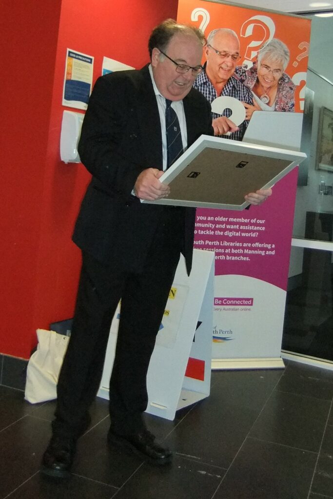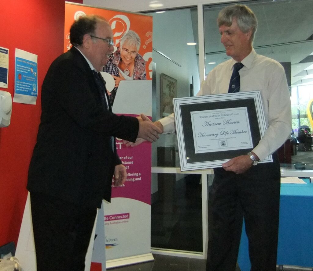 Honorary Life Members Photo Gallery Andrew Martin receiving his framed certificate from WAPC President Keith Michaelson Andrew admiring his new certificate